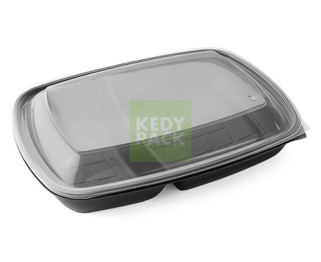 Présentation et stockage facilités : Barquettes ovales noires avec couvercles "mani" pour une conservation hermétique et une présentation élégante.